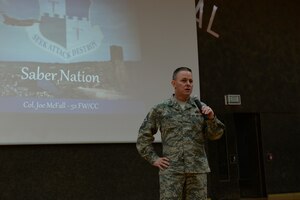 The 3rd Air Force commander announced the beginning of the U.S. Air Force's first European theater security package Feb. 18, 2015, at Spangdahlem Air Base, Germany.U.S. Air Force Lt. Gen. Darryl Roberson, 3rd Air Force and 17th Expeditionary Air Force commander, addressed media, local authorities