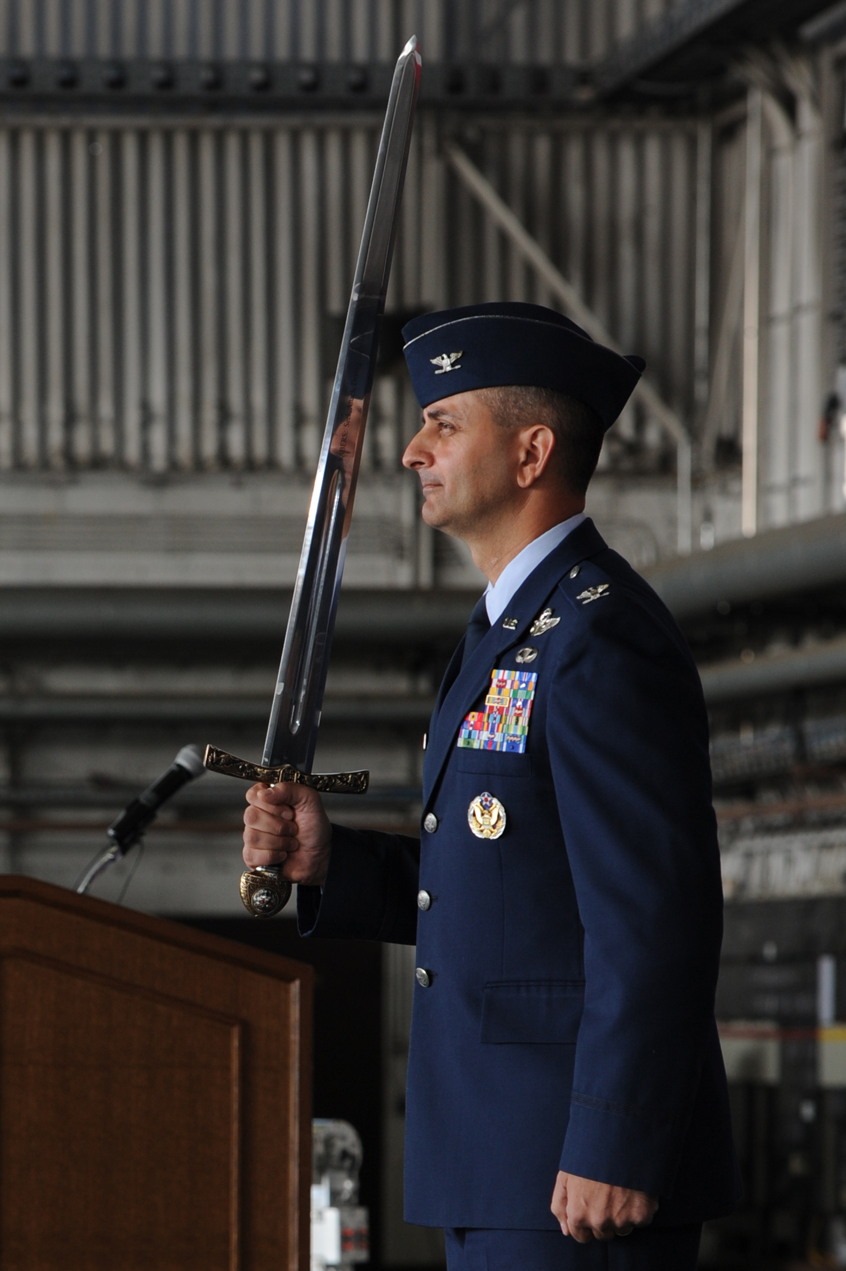 SPANGDAHLEM AIR BASE, Germany – Col. David Julazadeh, 52nd Fighter Wing commander, holds up a saber during the 52nd FW change of command ceremony July 3 here. Julazadeh assumed command of the 52nd FW from Brig. Gen. Chris Weggeman during the ceremony. More than 400 Spangdahlem Airmen, family members and community leaders attended the event to celebrate the passing of command. (U.S. Air Force photo by Senior Airman Natasha Stannard/Released)