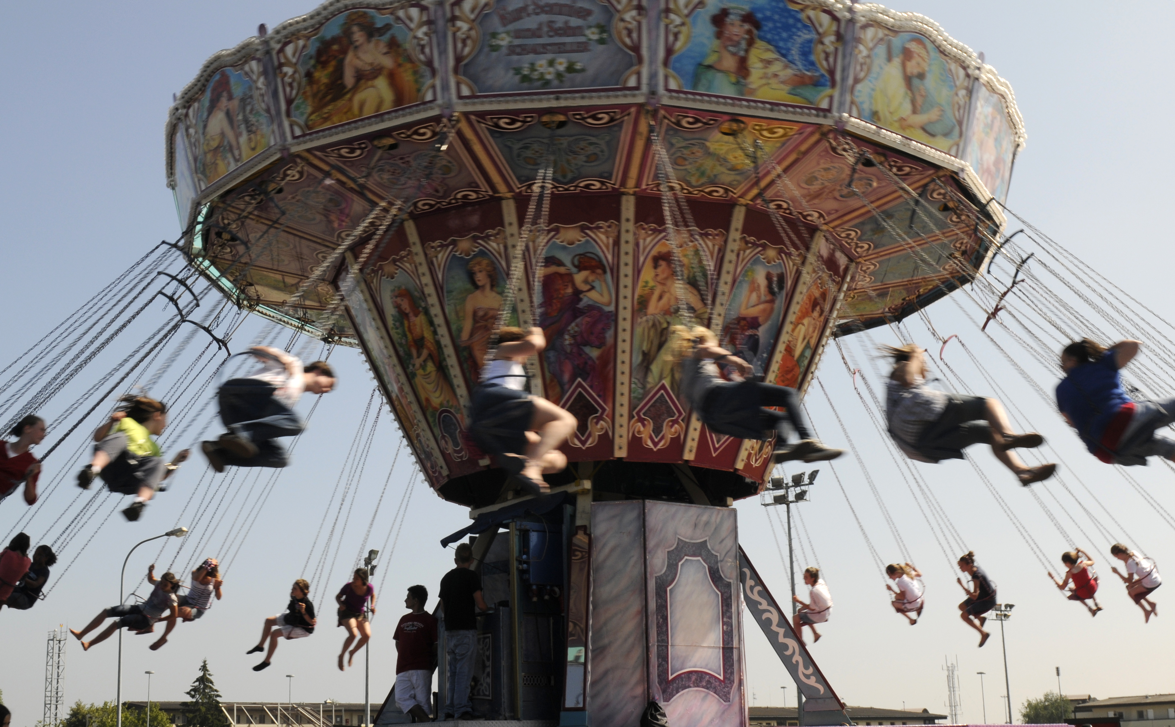 SPANGDAHLEM AIR BASE, Germany – Service members and their families swing through the air on a carnival ride during Super Saber Appreciation Day here July 4. In recognition of Independence Day, the Spangdahlem community celebrated with live bands, various activity booths, free food, a pet show and fireworks. (U.S. Air Force photo/Airman 1st Class Brittney Frees)